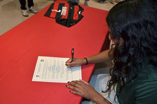 Varghese signed April 16 with Sarah Lawrence College, where she will continue her academic and athletic careers. She was a four-year starter on the Sewickley girls soccer team and will compete for the Gryphons starting in the fall.